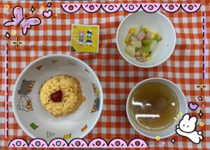 ・チーズオムライスは、チキンライスに炒り玉子を乗せた簡単オムライスです🥚