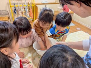 外でやるよりも通路が狭く、子どもたちもワクワク🤗