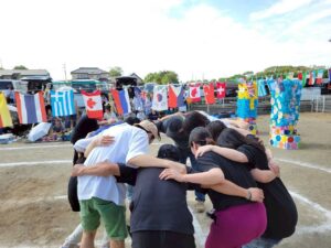 円陣を組み、気合満々のパパ❤ママたち🤣